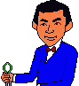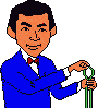 | @「右手に、1本のロープを持ちました」と云って、 見物人に見せます。 |
