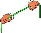 | <遊びかた> ロープの真ん中を、ハサミでチョキンと切ったのです が、ロープを広げてみると、どこにも切れ目がありま せん。ハテな? |