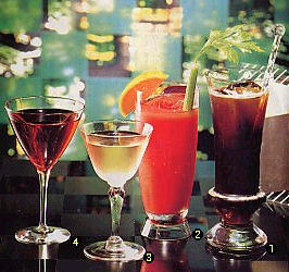 ![]() @キューバ・リバーキューバ独立の際、民衆が叫んだ“Viva Cuba Libre (キューバ万歳!)”からのネーミング。酸味がさわやかな清涼感。 ラム<ホワイト>…45ml、レモン…1/4個(またはライム…1/2個)コーラ…適 量●グラスの上でレモン(またはライム)の実を指で押しつぶし、ジュースを グラスに絞り込んだ上、しの実をグラスに入れる。レモンは1/4たて切り。ラ イムの場合は1/2横切りのカット面中央に十字の切れ目を入れると、絞り やすい。次に、氷2〜3個を加え、ラムを注ぎ、冷やしたコーラ2〜3倍で満 たし、軽くステアし、 マドラーを添える。 Aブラッディ・マリーウオッカ&トマトの組み合わせは、野性的でヘルシー な 感じがいい。ウオッカをテキーラに代えるとストローハット、ジンに代える とブラッディ・サム、あるいはレッド・スナッパーという名になる。 ウオッカ…30〜40ml、トマトジュース…適量 氷2〜3個入れたグラスにウオッカを注ぎ、トマトジュース2〜3倍で満たし、 ステアする。レモン1/6〜1/8カットを飾り、マドラーを添える。マドラーの代わり にセロリのスティックを添えてもよい。飲む時はレモンを絞り込んだり、好み の香辛料(タバスコ、塩、コショウ、セロリ・ソルト、ウスター・ソースなど)をふ りかけ、マド ラーでまぜて楽しむ。 B1920 ドライジン…3/5、ガンチアベルモット<エクストラ>…1/5、オレンジビタース …1ダッシュ、キルシュワッサー…1/5、グレナデンシロップ…1ダッシュ ●材料をステアして、カクテルグラスに注ぐ。 Cコンコルドガンチアベルモット<ロッソ>…4/10、ドライジン…3/10、カン パリ…2/10、クレーム・ド・カシス…1/10 ●材料をステアして、カクテルグラスに注ぐ。好みにより、オレンジスライス を飾 ってよい。 |