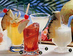 | トロピカルには、“熱帯の”“熱帯的な”という意味があ ります。1979年夏、サントリーが、新しいカクテル時代 の新しい飲み方として<トロピカル・カクテル>を展開 して以来、わが国でも大きなブームになりました。トロ ピカル・カクテルの基本は、ジン、ラム、ウオッカ、テキ ーラなどのスピリッツをジュースなどで割る事以外、決 められたルールはありません。自由な感覚にあふれた ファッショナブルなトロピカル・カクテルにチャレンジして みませんか。 トロピカル・カクテルのマルガリータのエピソードは、あ まりにも有名な話ですので、少しふれておきましょう。 マルガリータは、1949年、全米カクテル・コンテストで 入選したカクテルで、テキーラ・ベースの中では、最も ポピュラーなものの一つです。作った人は、ロサンゼル スのバーテンダー、ジャン・デュレッサーさんです。 1926年の事、若きデュレッサーさんは、メキシコ生まれ の初恋の人と、ネバタ州のバージニアへ狩猟に出かけ ました。なにもかもが美しく、幸せいっぱいのこの瞬間 が、これからもずっと続いて欲しいと願った矢先、彼女 に他のハンターが撃った弾が当たり、その場で彼の腕 に抱かれながらこの世を去ってしまいました。彼女の 名前はマルガリータといいました。 ハワイ生まれのチチ。お父さんという意味ではありま せん。“イキな”“スタイリッシュな”という意味なので す。フランス語のスラングで、洋服のふち飾りを“シシ” といいますが、それがアメリカにとり入れられて、チチ と発音し、格好いいという意味の形容詞になりました。 とってもおしゃれなカクテルです。 燃えるような太陽の下で飲む、フルーティでジューシィ な味と香りが最高天と小麦色のギャルたちに熱烈な支 持を受けて爆発的なブームを巻き起こしたトロピカル・ カクテルたち。リゾートの木陰のテラスで、というのがお あつらえ向きの舞台、という訳ですが、シティ感覚いっ ぱいの都会のカフェバーで南の海に思いを馳せながら 飲む、冷た〜い一杯もまた格別です。 ソルティドッグなどでグラスの縁に塩や砂糖をまぶし つけたカクテルを作る場合、雪が凍りついたような感じ がする事から日本ではスノー・スタイルと呼びます。完 全に乾燥したグラスの縁の外をレモン(またはライム) の切り口にあてて1回転させ、それを平らな皿に広げ た塩(または砂糖)に逆さまにあて、引き上げるとでき るスタイルです。グレープフルーツの香りが、まぶした 塩までも包み込み、グラスを傾けたとたん、トロピカル な風が流れはじめます。 トロピカルは自由なカクテルです。従来の概念にとらわ れず、独創性のあふれるカクテルを自分で作るのも楽 しいものです。 |