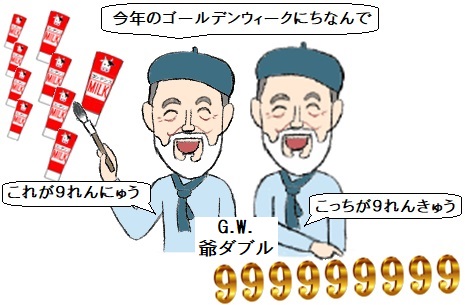 ※謎かけ:ゴールデンウィークとかけて、父は祖父の生き写しと解く。どちらも(G.W./爺ダブル)でしょう