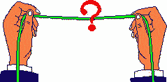 | <遊びかた> ロープの真ん中を、ハサミでチョキンと切ったのです が、ロープを広げてみると、どこにも切れ目がありま せん。ハテな? |