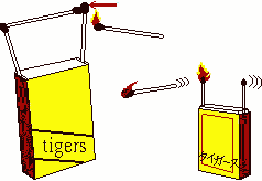 | @絵のように作り、右はしの矢印の部分 に火をつける。そして、マッチが左に飛ぶ か右に飛ぶかで、彼女と賭をする。 むろん、このまま帰る、帰らないのギャン ブル。こんな小さなキッカケが女性には 必要なのだ。 |